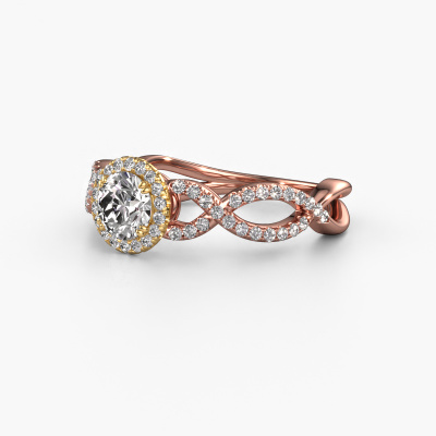 The ring shown above is called the Dionne rnd. We call this type of ring a pavé solitaire ring because it has one centre gemstone and a band that is also pave set with gemstones. The 14 Carat rose gold engagement ring is set with a round 0.40 crt diamond centre stone and the band is pave set with diamond gemstones. Each jewel is made just for you by our master goldsmiths in our own studio.This classic rose gold pavé solitaire engagement ring has an exquisite round diamond centre stone. To further accentuate the centre stone, the band is fully set with more diamonds. Its open prong setting allows light to strike the diamond from various angles and this adds sparkle to your diamond ring. The photo shown above depicts the goldsmith's carefully handcrafted details of the ring. The high positioning of the centre stone is truly eye-catching. The perfect engagement ring for the crown jewel of your life! Because we design and deliver our own rings, we can offer you a engagement ring at a price you won't find anywhere else. A ring is made to order, which helps prevent excess supplies, so we can make you a great price offer. We understand it feels risky, buying your engagement ring online, but we will gladly assist in the designing process, taking your budget into consideration.Do you have a specific ring in mind? One you came across somewhere. Please feel free to tell us your wishes and we will turn your design into a unique engagement ring. You can follow the development of your ring design because we use 3D drawings. This gives you a realistic preview of your design. We will gladly send you a non-binding offer, based on a fair price/ quality ratio. It will amaze you.To make it easier for you, we offer a 30 day return policy. Check our terms and conditions.