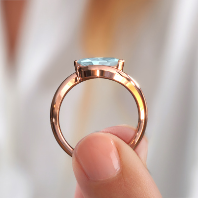 This 14 Carat rose gold ring is called Aida MRQ and is set with 11x5.5 mm aquamarine. Does your girlfriend fancy exclusive jewellery? Or would you like to show her that she deserves the finest jewellery? This rose gold ring is pure craftsmanship,