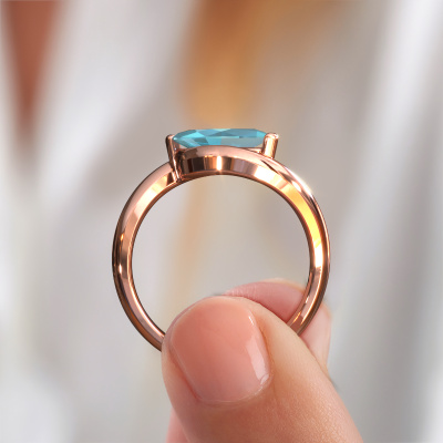 This 14 Carat rose gold ring is called Aida MRQ and is set with 11x5.5 mm blue topaz. Does your girlfriend fancy exclusive jewellery? Or would you like to show her that she deserves the finest jewellery? This rose gold ring is pure craftsmanship,