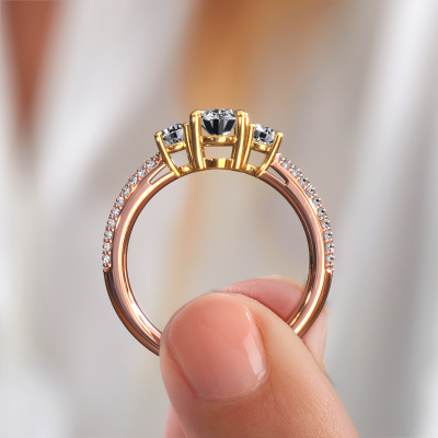 This 14 Carat rose gold ring is called Marielle OVL and is set with 1.47 crt diamond. Does your girlfriend fancy exclusive jewellery? Or would you like to show her that she deserves the finest jewellery? This rose gold ring is pure craftsmanship, love and passion combined with the latest techniques coming together in perfect harmony. It requires a keen eye, patience and a skilful hand to mould this ring into perfection. Just the job for our expert goldsmith! The diamonds set gemstones gives this rose gold ring an extra glamorous appearance. Customize the style of the pavé engagement ring to her liking with a wide variety of precious metals and gemstones which you select. That is how you create a unique ring for the most exclusive woman in your life! This jewel is made just for you by our master goldsmiths in our own studio.Are you on a budget? Please feel free to contact us, so we can go discuss your options. We offer our engagement rings at guaranteed best price, because we make them to order. You won't find such a price anywhere else!Have you found a specific engagement ring somewhere which you would like to give to your loved one? Please feel free to express your wishes to our jewel designers because we would be honoured to turn your design into a exclusive engagement ring. You can follow the development of your ring design because we use 3D drawings. This gives you a realistic preview of how your design will look. You can also preorder a dummy. A dummy is a plastic ring, which can be shaped according your ring design. You can try it on and check if its width and size are suitable for you. We will gladly send you a non-binding offer, based on a fair price/ quality ratio. It will amaze you, considering the quality of the ring and gemstones.To make it easier for you, we offer a 30 day return policy. Check our terms and conditions.