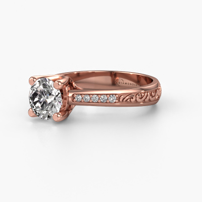 This 14 Carat rose gold ring is called Mei and is set with diamond. An extraordinary rose gold vintage ring. One that will surely make the love of your life shine like a diamond! That is what we hope to achieve. This Celtic engagement ring is set with exquisite diamonds. Whichever gemstone you choose from our selection, is up to you. The gemstone is selected with great care because we believe your engagement ring must be adorned with nothing but the most beautiful gemstone. Wouldn't you agree? Our expert goldsmith will design your ring in our own artisan studio, where the diamond will be set with great precision. The ring will then be polished till it is absolutely perfect. Nothing but the best for the love of your life! This jewel is made just for you, with attention to detail and design.Are you on a budget? Please feel free to contact us, so we can go discuss your options. We offer our engagement rings at guaranteed best price, because we make them to order. You won't find such a price anywhere else!Our team adds new designs to our online collection daily. Our designers and goldsmiths work together in creating the best design. We strive to offer a diverse collection of jewels. Perhaps you have a specific jewel design in mind. One you came across somewhere. Please contact us for a free consultation. We will make you an offer, based on a fair price/ quality ratio, that will baffle you.To make it easier for you, we offer a 30 day return policy. Check our terms and conditions.