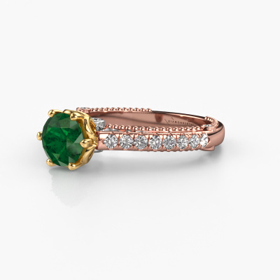 This 14 Carat rose gold ring is called Venita and is set with emerald. An extraordinary rose gold vintage ring. One that will surely make the love of your life shine like a diamond! That is what we hope to achieve. This vintage engagement ring is set with exquisite emerald. Whichever gemstone you choose from our selection, is up to you. The gemstone is selected with great care because we believe your engagement ring must be adorned with nothing but the most beautiful gemstone. Wouldn't you agree? Our expert goldsmith will design your ring in our own artisan studio, where the emerald will be set with great precision. The ring will then be polished till it is absolutely perfect. Nothing but the best for the love of your life! This jewel is made just for you by our master goldsmiths in our own studio.After receiving your order, our goldsmiths will passionately start the creative process of making your engagement ring in our own studio. Because we don't have a big stockpile, these costs will not be passed on to you. Our pricing is proof of that! We offer top quality jewels at lowest price, guaranteed.Our team adds new designs to our online collection daily. Our designers and goldsmiths work together in creating the best design. We strive to offer a diverse collection of jewels. Perhaps you have a specific jewel design in mind. One you came across somewhere. Please contact us for a free consultation. We will make you an offer, based on a fair price/ quality ratio, that will baffle you.To make it easier for you, we offer a 30 day return policy. Check our terms and conditions.
