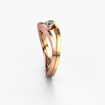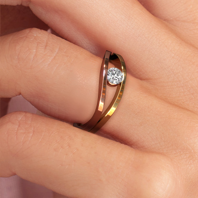 This 14 Carat rose gold ring is called Sigrid 1 and is set with 0.25 crt diamond. This design rose gold engagement ring is a true masterpiece! Our expert goldsmith uses special techniques during crafting of this tension set ring to make sure the diamond of this rose gold ring is fixed properly. The effect is that light fall reflects beautifully on the gemstone, which gives the ring its maximum shine and glamorous appearance. The result is a unique ring, with a trendy appearance, passionately handcrafted to perfection by our artisan goldsmith. A one-of-a-kind ring, designed for the love of your life! This jewel is made to shine bright around your finger. Each jewel is hand made with love by our goldsmiths.By using our modern techniques, we can design and customize the finest quality jewels with the utmost care for you. Our engagement rings are always priced 30 percent lower than other jewellers. We make engagement rings to order so we don't have to maintain a large stock. If you have a certain budget, we are more than happy to advice you accordingly.Different styles of new rings are made daily by our team. Perhaps you have found a solitaire engagement ring somewhere. One you would like to give to your loved one. Please feel free to share your thoughts and design with our jewel designers. We would love to turn your design into a design engagement ring. You can follow the development of your ring design because we use very detailed 3D drawings. On top of that, you can order a dummy of the design. A dummy is a plastic ring, which can be shaped according your ring design. You can try it on and check if the engagement ring is up to standard. We will gladly send you a non-binding offer, based on a fair price/ quality ratio. The offer will baffle you, considering the quality of the ring and gemstones.To make it easier for you, we offer a 30 day return policy. Check our terms and conditions.