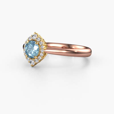 The ring shown above is called the Tora. We call this type of ring a cluster ring, the centre gemstone is surrounded by smaller sized stones. This 14 Carat rose gold version is set with a 5 mm round blue lab grown diamond centre stone, embraced by smaller lab-grown diamonds. The classic rose gold cluster engagement ring stands out because of its shape. Together, the smaller and bigger sized blue lab grown diamond gemstones form a flower and they appear to collide into one big sparkling gem. This classic engagement ring is also known as the flower ring. Our expert Goldsmiths make sure the smaller lab-grown diamonds stones are set identically so there is no light interference in the blue lab grown diamond but unity instead. With perfect precision and a skilful hand each blue lab grown diamond is set in the ring. During manufacturing, it is constantly monitored to make sure light reflects flawlessly. This results in a unique engagement ring, with a radiant blue lab grown diamond at its centre. A lovely, meaningful gift to bestow upon the love of your life. By using a combination of the latest modern techniques, combined with ancient crafting, we can make all our engagement rings in our own studio. Each jewel is made to order. This is advantageous because we can offer you a price you won't find anywhere else.Have you found a specific engagement ring somewhere which you would like to give to your loved one? Please feel free to express your wishes to our jewel designers because we would be honoured to turn your design into a classic engagement ring. You can follow the development of your ring design because we use 3D drawings. This gives you a realistic preview of how your design will look. You can also preorder a dummy. A dummy is a plastic ring, which can be shaped according your ring design. You can try it on and check if its width and size are suitable for you. We will gladly send you a non-binding offer, based on a fair price/ quality ratio. It will amaze you, considering the quality of the ring and gemstones.To make it easier for you, we offer a 30 day return policy. Check our terms and conditions.