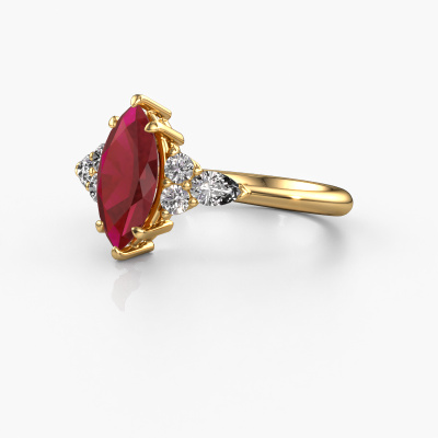 This 14 Carat gold ring is called Melani MRQ and is set with 11x5.5 mm ruby. What is it that makes your relationship unique? What is it about her that makes you want to bend down on one knee? The unique bond between the two of you is emphasized by an equally unique ring. A one of a kind graceful cluster engagement ring made especially for her. That is why this trendy ring fits her like a glove. Each specific detail of this graceful gold ruby set engagement ring is hand-picked, crafted and polished by our expert goldsmith. The result is an exquisite ring, unique and perfectly crafted to perfection. That is what our expert Goldsmiths strive for. This jewel is made just for you, with attention to detail and design.After receiving your order, our goldsmiths will passionately start the creative process of making your engagement ring in our own studio. Because we don't have a big stockpile, these costs will not be passed on to you. Our pricing is proof of that! We offer top quality jewels at lowest price, guaranteed.Do you have a specific ring in mind? One you came across somewhere. Please feel free to tell us your wishes and we will turn your design into a unique engagement ring. You can follow the development of your ring design because we use 3D drawings. This gives you a realistic preview of your design. We will gladly send you a non-binding offer, based on a fair price/ quality ratio. It will amaze you.To make it easier for you, we offer a 30 day return policy. Check our terms and conditions.
