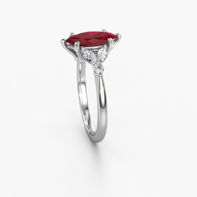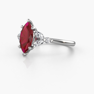 The ring shown above is called the Megan MRQ. We call this type of ring a pavé solitaire ring because it has one centre gemstone and a band that is also pave set with gemstones. This engagement ring is made in platinum set with a 11x5.5 mm marquise ruby, and pave set lab-grown diamonds at the sides. Each piece of jewellery is made with passion and love by one of our master goldsmiths.This fantasy platinum pavé solitaire engagement ring has an exquisite marquise ruby centre stone. To further accentuate the centre stone, the band is set full with more lab-grown diamonds. Its open prong setting allows light to strike the ruby from various angles and this adds sparkle to your ruby ring. The photo shown above depicts the goldsmith's carefully handcrafted details of the ring. The high positioning of the centre stone is truly eye-catching. The perfect engagement ring for the crown jewel of your life![bestp1v_long]Have you found a specific engagement ring somewhere which you would like to give to your loved one? Please feel free to express your wishes to our jewel designers because we would be honoured to turn your design into a fantasy engagement ring. You can follow the development of your ring design because we use 3D drawings. This gives you a realistic preview of how your design will look. You can also preorder a dummy. A dummy is a plastic ring, which can be shaped according your ring design. You can try it on and check if its width and size are suitable for you. We will gladly send you a non-binding offer, based on a fair price/ quality ratio. It will amaze you, considering the quality of the ring and gemstones.To make it easier for you, we offer a 30 day return policy. Check our terms and conditions.
