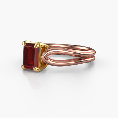 The ring shown above is called the Antonia eme 1, we call this a solitaire ring because it contains a single gemstone. The engagement ring is made in 14 Carat rose gold and has a emerald cut ruby of 7x5 mm. The cool thing about our configurator is that you can compile your own piece of jewellery, into a completely personalized one. This solitaire ring is crafted in the precious metals rose gold with gold, but of course you are free to pick your own colours. Each piece of jewellery is created to add sparkle to your finger, each jewel is lovingly made by hand by our goldsmiths.The solitaire ring is a special type of engagement ring. Its open prong setting allows light to strike the gemstone from various angles. This fantasy engagement ring is a stunning eye-catcher because of the high positioning of the gemstone. In order for you to commemorate your proposal with a unique ring, we carefully adorn this solitaire ring by hand. The love of your life deserves nothing but the best. Because we design and deliver our own rings, we can offer you a engagement ring at a price you won't find anywhere else. A ring is made to order, which helps prevent excess supplies, so we can make you a great price offer. We understand it feels risky, buying your engagement ring online, but we will gladly assist in the designing process, taking your budget into consideration.Our designers and goldsmiths work together each day, creating new jewels. Perhaps you have found a nice fantasy engagement ring somewhere, which can be used to customize your unique ring. Please feel free to contact us. We will make you an offer, based on a fair price/ quality ratio, which will amaze you.To make it easier for you, we offer a 30 day return policy. Check our terms and conditions.