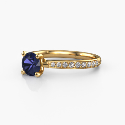 The ring shown above is called the Mignon rnd 2. We call this type of ring a pavé solitaire ring because it has one centre gemstone and a band that is also pave set with gemstones. The 14 Carat gold engagement ring is set with a round 6 mm sapphire centre stone and the band is pave set with lab grown diamond gemstones. Each jewel is made by a team of passionate goldsmiths and jewel designers. This will make your crown jewel truly eye-catching.This luxury gold pavé solitaire engagement ring has an exquisite round sapphire centre stone. To further accentuate the centre stone, the band is fully set with more lab-grown diamonds. Its open prong setting allows light to strike the sapphire from various angles and this adds sparkle to your sapphire ring. The photo shown above depicts the goldsmith's carefully handcrafted details of the ring. The high positioning of the centre stone is truly eye-catching. The perfect engagement ring for the crown jewel of your life! By using our modern techniques, we can design and customize the finest quality jewels with the utmost care for you. Our engagement rings are always priced 30 percent lower than other jewellers. We make engagement rings to order so we don't have to maintain a large stock. If you have a certain budget, we are more than happy to advice you accordingly.Different styles of new rings are made daily by our team. Perhaps you have found a pavé solitaire engagement ring somewhere. One you would like to give to your loved one. Please feel free to share your thoughts and design with our jewel designers. We would love to turn your design into a luxury engagement ring. You can follow the development of your ring design because we use very detailed 3D drawings. On top of that, you can order a dummy of the design. A dummy is a plastic ring, which can be shaped according your ring design. You can try it on and check if the engagement ring is up to standard. We will gladly send you a non-binding offer, based on a fair price/ quality ratio. The offer will baffle you, considering the quality of the ring and gemstones.To make it easier for you, we offer a 30 day return policy. Check our terms and conditions.