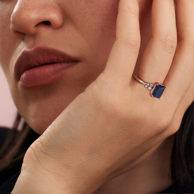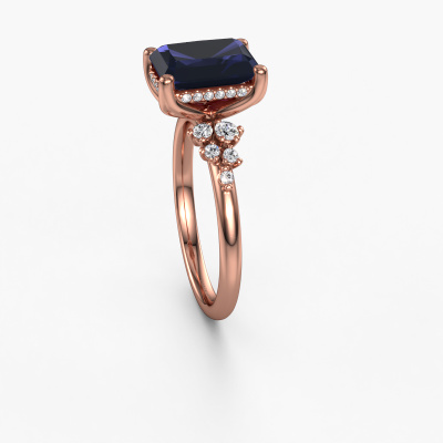 This 14 Carat rose gold ring is called Emma RAD and is set with 9x7 mm sapphire. What is it that makes your relationship unique? What is it about her that makes you want to bend down on one knee? The unique bond between the two of you is emphasized by an equally unique ring. A one of a kind stylish pavé solitaire engagement ring made especially for her. That is why this exclusive ring fits her like a glove. Each specific detail of this stylish rose gold sapphire set engagement ring is hand-picked, crafted and polished by our expert goldsmith. The result is an exquisite ring, unique and perfectly crafted to perfection. That is what our expert Goldsmiths strive for. This jewel is made by a team of passionate goldsmiths and jewel designers. This will make your crown jewel truly eye-catching.Because we design and deliver our own rings, we can offer you a engagement ring at a price you won't find anywhere else. A ring is made to order, which helps prevent excess supplies, so we can make you a great price offer. We understand it feels risky, buying your engagement ring online, but we will gladly assist in the designing process, taking your budget into consideration.Our designers and goldsmiths work together each day, creating new jewels. Perhaps you have found a nice exclusive engagement ring somewhere, which can be used to customize your unique ring. Please feel free to contact us. We will make you an offer, based on a fair price/ quality ratio, which will amaze you.To make it easier for you, we offer a 30 day return policy. Check our terms and conditions.