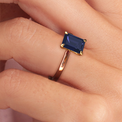 The ring shown above is called the Crystal EME 1, we call this a solitaire ring because it contains a single gemstone. The engagement ring is made in 14 Carat rose gold and has a emerald cut sapphire of 8x6 mm. The cool thing about our configurator is that you can compile your own piece of jewellery, into a completely personalized one. This solitaire ring is crafted in the precious metals rose gold with gold, but of course you are free to pick your own colours. Each piece of jewellery is made with passion and love by one of our master goldsmiths.The solitaire ring is a special type of engagement ring. Its open prong setting allows light to strike the gemstone from various angles. This classic engagement ring is a stunning eye-catcher because of the high positioning of the gemstone. In order for you to commemorate your proposal with a unique ring, we carefully adorn this solitaire ring by hand. The love of your life deserves nothing but the best. After receiving your order, our goldsmiths will passionately start the creative process of making your engagement ring in our own studio. Because we don't have a big stockpile, these costs will not be passed on to you. Our pricing is proof of that! We offer top quality jewels at lowest price, guaranteed.Our designers and goldsmiths work together each day, creating new jewels. Perhaps you have found a nice classic engagement ring somewhere, which can be used to customize your unique ring. Please feel free to contact us. We will make you an offer, based on a fair price/ quality ratio, which will amaze you.To make it easier for you, we offer a 30 day return policy. Check our terms and conditions.