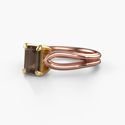 The ring shown above is called the Antonia eme 1, we call this a solitaire ring because it contains a single gemstone. The engagement ring is made in 14 Carat rose gold and has a emerald cut smokey quartz of 7x5 mm. The cool thing about our configurator is that you can compile your own piece of jewellery, into a completely personalized one. This solitaire ring is crafted in the precious metals rose gold with gold, but of course you are free to pick your own colours. Each piece of jewellery is created to add sparkle to your finger, each jewel is lovingly made by hand by our goldsmiths.The solitaire ring is a special type of engagement ring. Its open prong setting allows light to strike the gemstone from various angles. This fantasy engagement ring is a stunning eye-catcher because of the high positioning of the gemstone. In order for you to commemorate your proposal with a unique ring, we carefully adorn this solitaire ring by hand. The love of your life deserves nothing but the best. Because we design and deliver our own rings, we can offer you a engagement ring at a price you won't find anywhere else. A ring is made to order, which helps prevent excess supplies, so we can make you a great price offer. We understand it feels risky, buying your engagement ring online, but we will gladly assist in the designing process, taking your budget into consideration.Our designers and goldsmiths work together each day, creating new jewels. Perhaps you have found a nice fantasy engagement ring somewhere, which can be used to customize your unique ring. Please feel free to contact us. We will make you an offer, based on a fair price/ quality ratio, which will amaze you.To make it easier for you, we offer a 30 day return policy. Check our terms and conditions.