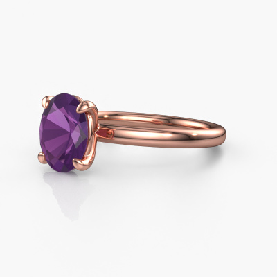 This 14 Carat rose gold ring is called Simone OVL 1 and is set with 9x7 mm amethyst. This exclusive rose gold solitaire engagement ring is a true work of art! The ornaments are crafted with a lot of patience and great passion. In order to create this ring with great precision, this craft requires a keen eye and skilful hand. A challenge which ignites a fire in our expert goldsmith. The exquisite amethysten are set in a special way so they stand out even more. This gives the ring an even more glamorous appearance. The fine engagement ring is actually unique on its own because of the gemstones which we carefully select especially for this ring. On top of that you select the precious metals which will be used to create a unique ring for the most extraordinary woman in your life! This jewel is made just for you by our master goldsmiths in our own studio.After receiving your order, our goldsmiths will passionately start the creative process of making your engagement ring in our own studio. Because we don't have a big stockpile, these costs will not be passed on to you. Our pricing is proof of that! We offer top quality jewels at lowest price, guaranteed.Our designers and goldsmiths work together each day, creating new jewels. Perhaps you have found a nice luxury engagement ring somewhere, which can be used to customize your unique ring. Please feel free to contact us. We will make you an offer, based on a fair price/ quality ratio, which will amaze you.To make it easier for you, we offer a 30 day return policy. Check our terms and conditions.