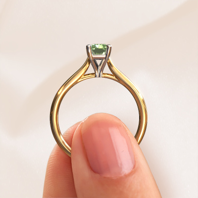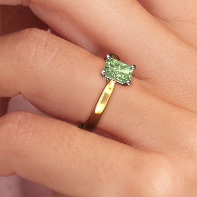 This 14 Carat gold ring is called Mignon RAD 1 and is set with green lab grown diamond. Do you keep up with the latest fashion trends? Do you want a unique engagement ring that matches your lifestyle? This narrow engagement ring is an extraordinary ring which can be custom-made to fit your or her personal style. This fashionable gold engagement ring is set with green lab grown diamond. Our green lab grown diamonds are carefully selected for this specific ring in order to create the best effect. Our expert goldsmith will create your ring in our own artisan studio where the green lab grown diamond will be set with great care. The ring will then be polished to perfection. Nothing but the best for the love of your life! This jewel is created to add sparkle to your finger, each jewel is lovingly made by hand by our goldsmiths.After receiving your order, our goldsmiths will start the creative process of making your Mignon RAD 1 engagement ring. We don't keep stock. This is advantageous because these costs will not be passed on to you. Therefore, we can offer jewellery at exceptionally low prices.Our team adds new designs to our online collection daily. Our designers and goldsmiths work together in creating the best design. We strive to offer a diverse collection of jewels. Perhaps you have a specific jewel design in mind. One you came across somewhere. Please contact us for a free consultation. We will make you an offer, based on a fair price/ quality ratio, that will baffle you.To make it easier for you, we offer a 30 day return policy. Check our terms and conditions.
