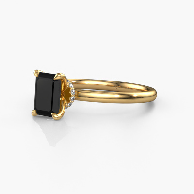 The ring shown above is called the Crystal EME 3, we call this a solitaire ring because it contains a single gemstone. The engagement ring is made in 14 Carat gold and has a emerald cut black diamond of 1.380 crt. This classic gold solitaire ring with exquisite emerald cut black diamond is a beautiful engagement ring. The open prong setting allows light to strike the gemstone from various angles. The ring also stands out because of the high positioning of the gemstone. Because diamonds symbolize true love and purity, they make the perfect gift for the love of your life. The symbol of eternal love is the centerpiece of this solitaire ring. Like a diamond, all other types of precious metal have their own attributed symbolic meaning. You can compile the solitaire engagement ring yourself in various precious metal combinations. This one has the combination of 14 Carat gold with gold. Each piece of jewelry is made by a team of passionate goldsmiths and jewel designers. This will make your crown jewel truly eye-catching.By using our modern techniques, we can design and customize the finest quality jewels with the utmost care for you. Our engagement rings are always priced 30 percent lower than other jewellers. We make engagement rings to order so we don't have to maintain a large stock. If you have a certain budget, we are more than happy to advice you accordingly.Do you have a specific ring in mind? One you came across somewhere. Please feel free to tell us your wishes and we will turn your design into a unique engagement ring. You can follow the development of your ring design because we use 3D drawings. This gives you a realistic preview of your design. We will gladly send you a non-binding offer, based on a fair price/ quality ratio. It will amaze you.To make it easier for you, we offer a 30 day return policy. Check our terms and conditions.