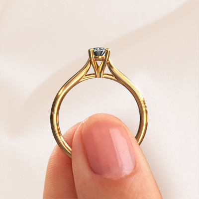 The ring shown above is called the Mignon ovl 1, we call this a solitaire ring because it contains a single gemstone. The engagement ring is made in 14 Carat gold and has a oval diamond of 0.40 crt. This traditional gold solitaire ring with exquisite oval diamond is a beautiful engagement ring. The open prong setting allows light to strike the gemstone from various angles. The ring also stands out because of the high positioning of the gemstone. Because diamonds symbolize true love and purity, they make the perfect gift for the love of your life. The symbol of eternal love is the centerpiece of this solitaire ring. Like a diamond, all other types of precious metal have their own attributed symbolic meaning. You can compile the solitaire engagement ring yourself in various precious metal combinations. This one has the combination of 14 Carat gold with gold. Each piece of jewelry is made by a team of passionate goldsmiths and jewel designers. This will make your crown jewel truly eye-catching.By using a combination of the latest modern techniques, combined with ancient crafting, we can make all our engagement rings in our own studio. Each jewel is made to order. This is advantageous because we can offer you a price you won't find anywhere else.Our designers and goldsmiths work together each day, creating new jewels. Perhaps you have found a nice traditional engagement ring somewhere, which can be used to customize your unique ring. Please feel free to contact us. We will make you an offer, based on a fair price/ quality ratio, which will amaze you.To make it easier for you, we offer a 30 day return policy. Check our terms and conditions.