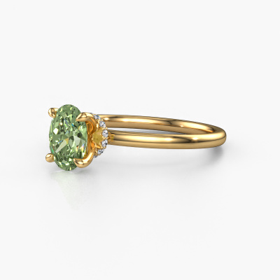 The ring shown above is called the Crystal OVL 3, we call this a solitaire ring because it contains a single gemstone. The engagement ring is made in 14 Carat gold and has a oval green lab grown diamond of 7,5x5,5 mm. This unique gold solitaire ring with exquisite oval green lab grown diamond is a beautiful engagement ring. The open prong setting allows light to strike the gemstone from various angles. The ring also stands out because of the high positioning of the gemstone. Because diamonds symbolize true love and purity, they make the perfect gift for the love of your life. The symbol of eternal love is the centerpiece of this solitaire ring. Like a diamond, all other types of precious metal have their own attributed symbolic meaning. You can compile the solitaire engagement ring yourself in various precious metal combinations. This one has the combination of 14 Carat gold with gold. Each piece of jewelry is made just for you by our master goldsmiths in our own studio.After receiving your order, our goldsmiths will passionately start the creative process of making your engagement ring in our own studio. Because we don't have a big stockpile, these costs will not be passed on to you. Our pricing is proof of that! We offer top quality jewels at lowest price, guaranteed.Our designers and goldsmiths work together each day, creating new jewels. Perhaps you have found a nice unique engagement ring somewhere, which can be used to customize your unique ring. Please feel free to contact us. We will make you an offer, based on a fair price/ quality ratio, which will amaze you.To make it easier for you, we offer a 30 day return policy. Check our terms and conditions.