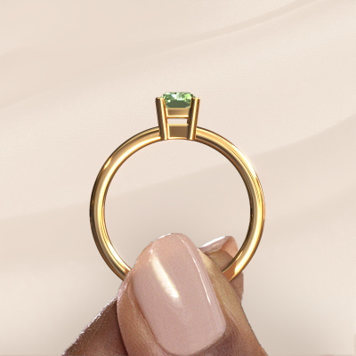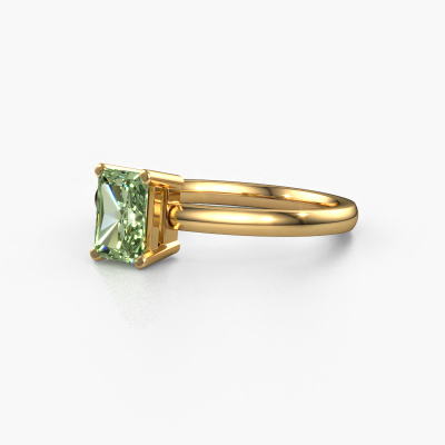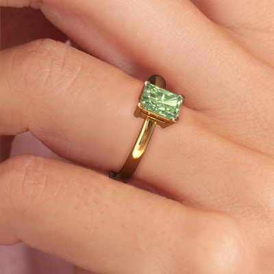 The ring shown above is called the Denita 1 RAD, we call this a solitaire ring because it contains a single gemstone. The engagement ring is made in 14 Carat gold and has a radiant green lab grown diamond of 6.5x4.5 mm. This modern gold solitaire ring with exquisite radiant green lab grown diamond is a beautiful engagement ring. The open prong setting allows light to strike the gemstone from various angles. The ring also stands out because of the high positioning of the gemstone. Because diamonds symbolize true love and purity, they make the perfect gift for the love of your life. The symbol of eternal love is the centerpiece of this solitaire ring. Like a diamond, all other types of precious metal have their own attributed symbolic meaning. You can compile the solitaire engagement ring yourself in various precious metal combinations. This one has the combination of 14 Carat gold with gold. Each piece of jewelry is made just for you, with attention to detail and design.After receiving your order, our goldsmiths will start the creative process of making your Denita 1 RAD engagement ring. We don't keep stock. This is advantageous because these costs will not be passed on to you. Therefore, we can offer jewellery at exceptionally low prices.Our designers and goldsmiths work together each day, creating new jewels. Perhaps you have found a nice modern engagement ring somewhere, which can be used to customize your unique ring. Please feel free to contact us. We will make you an offer, based on a fair price/ quality ratio, which will amaze you.To make it easier for you, we offer a 30 day return policy. Check our terms and conditions.