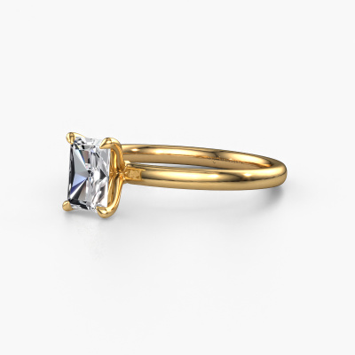 The ring shown above is called the Crystal RAD 1, we call this a solitaire ring because it contains a single gemstone. The engagement ring is made in 14 Carat gold and has a radiant lab grown diamond of 0.75 crt. This modern gold solitaire ring with exquisite radiant lab grown diamond is a beautiful engagement ring. The open prong setting allows light to strike the gemstone from various angles. The ring also stands out because of the high positioning of the gemstone. Because diamonds symbolize true love and purity, they make the perfect gift for the love of your life. The symbol of eternal love is the centerpiece of this solitaire ring. Like a diamond, all other types of precious metal have their own attributed symbolic meaning. You can compile the solitaire engagement ring yourself in various precious metal combinations. This one has the combination of 14 Carat gold with gold. Each piece of jewelry is made by a team of passionate goldsmiths and jewel designers. This will make your crown jewel truly eye-catching.After receiving your order, our goldsmiths will passionately start the creative process of making your engagement ring in our own studio. Because we don't have a big stockpile, these costs will not be passed on to you. Our pricing is proof of that! We offer top quality jewels at lowest price, guaranteed.Have you found a specific engagement ring somewhere which you would like to give to your loved one? Please feel free to express your wishes to our jewel designers because we would be honoured to turn your design into a modern engagement ring. You can follow the development of your ring design because we use 3D drawings. This gives you a realistic preview of how your design will look. You can also preorder a dummy. A dummy is a plastic ring, which can be shaped according your ring design. You can try it on and check if its width and size are suitable for you. We will gladly send you a non-binding offer, based on a fair price/ quality ratio. It will amaze you, considering the quality of the ring and gemstones.To make it easier for you, we offer a 30 day return policy. Check our terms and conditions.