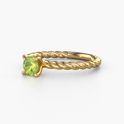 The ring shown above is called the Twanna, we call this a solitaire ring because it contains a single gemstone. The engagement ring is made in 14 Carat gold and has a round peridot of 5 mm. This fantasy gold solitaire ring with exquisite round peridot is a beautiful engagement ring. The open prong setting allows light to strike the gemstone from various angles. The ring also stands out because of the high positioning of the gemstone. Because diamonds symbolize true love and purity, they make the perfect gift for the love of your life. The symbol of eternal love is the centerpiece of this solitaire ring. Like a diamond, all other types of precious metal have their own attributed symbolic meaning. You can compile the solitaire engagement ring yourself in various precious metal combinations. This one has the combination of 14 Carat gold with gold. Each piece of jewelry is made by a team of passionate goldsmiths and jewel designers. This will make your crown jewel truly eye-catching.After receiving your order, our goldsmiths will passionately start the creative process of making your engagement ring in our own studio. Because we don't have a big stockpile, these costs will not be passed on to you. Our pricing is proof of that! We offer top quality jewels at lowest price, guaranteed.Do you have a specific ring in mind? One you came across somewhere. Please feel free to tell us your wishes and we will turn your design into a unique engagement ring. You can follow the development of your ring design because we use 3D drawings. This gives you a realistic preview of your design. We will gladly send you a non-binding offer, based on a fair price/ quality ratio. It will amaze you.To make it easier for you, we offer a 30 day return policy. Check our terms and conditions.