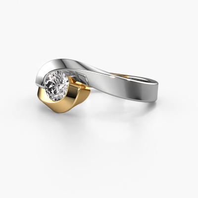 The ring shown above is called the Sheryl, we call this a solitaire ring because it contains a single gemstone. The engagement ring is made in 14 Carat gold and has a round diamond of 0.50 crt. This contemporary gold solitaire ring with exquisite round diamond is a beautiful engagement ring. The open prong setting allows light to strike the gemstone from various angles. The ring also stands out because of the high positioning of the gemstone. Because diamonds symbolize true love and purity, they make the perfect gift for the love of your life. The symbol of eternal love is the centerpiece of this solitaire ring. Like a diamond, all other types of precious metal have their own attributed symbolic meaning. You can compile the solitaire engagement ring yourself in various precious metal combinations. This one has the combination of 14 Carat gold with white gold. Each piece of jewelry is unique in every way! Simply customize to your likingBy using our modern techniques, we can design and customize the finest quality jewels with the utmost care for you. Our engagement rings are always priced 30 percent lower than other jewellers. We make engagement rings to order so we don't have to maintain a large stock. If you have a certain budget, we are more than happy to advice you accordingly.Our team adds new designs to our online collection daily. Our designers and goldsmiths work together in creating the best design. We strive to offer a diverse collection of jewels. Perhaps you have a specific jewel design in mind. One you came across somewhere. Please contact us for a free consultation. We will make you an offer, based on a fair price/ quality ratio, that will baffle you.To make it easier for you, we offer a 30 day return policy. Check our terms and conditions.
