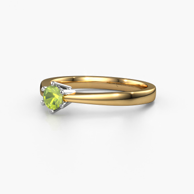 The ring shown above is called the Noortje, we call this a solitaire ring because it contains a single gemstone. The engagement ring is made in 14 Carat gold and has a round peridot of 4 mm. This classic gold solitaire ring with exquisite round peridot is a beautiful engagement ring. The open prong setting allows light to strike the gemstone from various angles. The ring also stands out because of the high positioning of the gemstone. Because diamonds symbolize true love and purity, they make the perfect gift for the love of your life. The symbol of eternal love is the centerpiece of this solitaire ring. Like a diamond, all other types of precious metal have their own attributed symbolic meaning. You can compile the solitaire engagement ring yourself in various precious metal combinations. This one has the combination of 14 Carat gold with white gold. Each piece of jewelry is made by a team of passionate goldsmiths and jewel designers. This will make your crown jewel truly eye-catching.By using a combination of the latest modern techniques, combined with ancient crafting, we can make all our engagement rings in our own studio. Each jewel is made to order. This is advantageous because we can offer you a price you won't find anywhere else.Our team adds new designs to our online collection daily. Our designers and goldsmiths work together in creating the best design. We strive to offer a diverse collection of jewels. Perhaps you have a specific jewel design in mind. One you came across somewhere. Please contact us for a free consultation. We will make you an offer, based on a fair price/ quality ratio, that will baffle you.To make it easier for you, we offer a 30 day return policy. Check our terms and conditions.