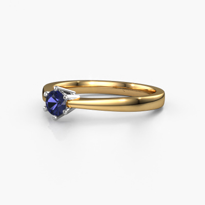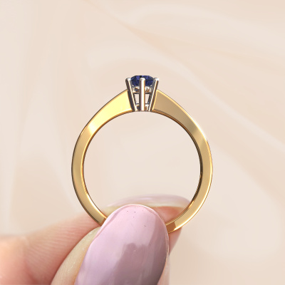 The ring shown above is called the Noortje, we call this a solitaire ring because it contains a single gemstone. The engagement ring is made in 14 Carat gold and has a round sapphire of 4 mm. This classic gold solitaire ring with exquisite round sapphire is a beautiful engagement ring. The open prong setting allows light to strike the gemstone from various angles. The ring also stands out because of the high positioning of the gemstone. Because diamonds symbolize true love and purity, they make the perfect gift for the love of your life. The symbol of eternal love is the centerpiece of this solitaire ring. Like a diamond, all other types of precious metal have their own attributed symbolic meaning. You can compile the solitaire engagement ring yourself in various precious metal combinations. This one has the combination of 14 Carat gold with white gold. Each piece of jewelry is made by a team of passionate goldsmiths and jewel designers. This will make your crown jewel truly eye-catching.By using a combination of the latest modern techniques, combined with ancient crafting, we can make all our engagement rings in our own studio. Each jewel is made to order. This is advantageous because we can offer you a price you won't find anywhere else.Our team adds new designs to our online collection daily. Our designers and goldsmiths work together in creating the best design. We strive to offer a diverse collection of jewels. Perhaps you have a specific jewel design in mind. One you came across somewhere. Please contact us for a free consultation. We will make you an offer, based on a fair price/ quality ratio, that will baffle you.To make it easier for you, we offer a 30 day return policy. Check our terms and conditions.