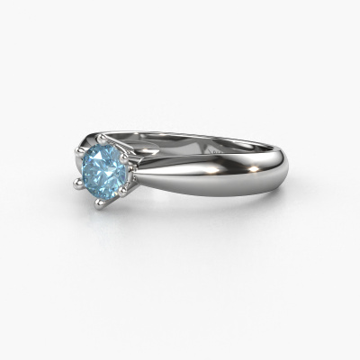 The ring shown above is called the Fay, we call this a solitaire ring because it contains a single gemstone. The engagement ring is made in platinum and has a round blue lab grown diamond of 5 mm. This traditional platinum solitaire ring with exquisite round blue lab grown diamond is a beautiful engagement ring. The open prong setting allows light to strike the gemstone from various angles. The ring also stands out because of the high positioning of the gemstone. Because diamonds symbolize true love and purity, they make the perfect gift for the love of your life. The symbol of eternal love is the centerpiece of this solitaire ring. Like a diamond, all other types of precious metal have their own attributed symbolic meaning. You can compile the solitaire engagement ring yourself in various precious metal combinations. This one has the combination of platinum with platinum. Each piece of jewelry is made just for you by our master goldsmiths in our own studio.By using a combination of the latest modern techniques, combined with ancient crafting, we can make all our engagement rings in our own studio. Each jewel is made to order. This is advantageous because we can offer you a price you won't find anywhere else.Have you found a specific engagement ring somewhere which you would like to give to your loved one? Please feel free to express your wishes to our jewel designers because we would be honoured to turn your design into a traditional engagement ring. You can follow the development of your ring design because we use 3D drawings. This gives you a realistic preview of how your design will look. You can also preorder a dummy. A dummy is a plastic ring, which can be shaped according your ring design. You can try it on and check if its width and size are suitable for you. We will gladly send you a non-binding offer, based on a fair price/ quality ratio. It will amaze you, considering the quality of the ring and gemstones.To make it easier for you, we offer a 30 day return policy. Check our terms and conditions.