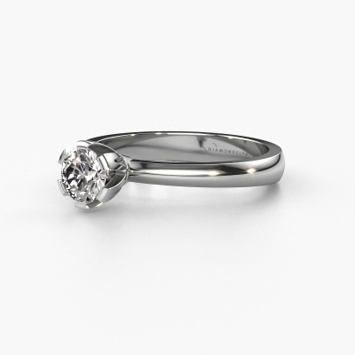 The ring shown above is called the Julia, we call this a solitaire ring because it contains a single gemstone. The engagement ring is made in platinum and has a round diamond of 0.40 crt. This trendy platinum solitaire ring with exquisite round diamond is a beautiful engagement ring. The open prong setting allows light to strike the gemstone from various angles. The ring also stands out because of the high positioning of the gemstone. Because diamonds symbolize true love and purity, they make the perfect gift for the love of your life. The symbol of eternal love is the centerpiece of this solitaire ring. Like a diamond, all other types of precious metal have their own attributed symbolic meaning. You can compile the solitaire engagement ring yourself in various precious metal combinations. This one has the combination of platinum with platinum. Each piece of jewelry is created to add sparkle to your finger, each jewel is lovingly made by hand by our goldsmiths.Are you on a budget? Please feel free to contact us, so we can go discuss your options. We offer our engagement rings at guaranteed best price, because we make them to order. You won't find such a price anywhere else!Different styles of new rings are made daily by our team. Perhaps you have found a solitaire engagement ring somewhere. One you would like to give to your loved one. Please feel free to share your thoughts and design with our jewel designers. We would love to turn your design into a trendy engagement ring. You can follow the development of your ring design because we use very detailed 3D drawings. On top of that, you can order a dummy of the design. A dummy is a plastic ring, which can be shaped according your ring design. You can try it on and check if the engagement ring is up to standard. We will gladly send you a non-binding offer, based on a fair price/ quality ratio. The offer will baffle you, considering the quality of the ring and gemstones.To make it easier for you, we offer a 30 day return policy. Check our terms and conditions.