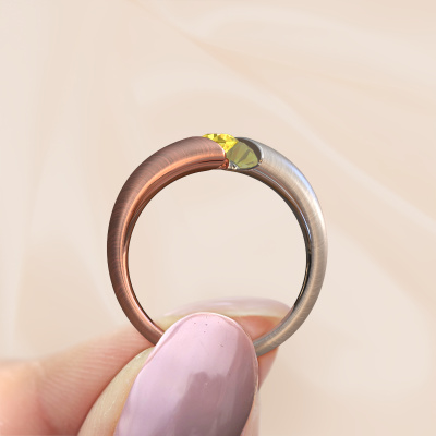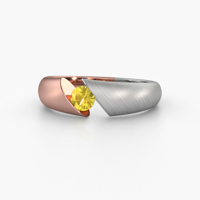 This 14 Carat rose gold ring is called Hojalien 1 and is set with yellow sapphire. Do you keep up with the latest fashion trends? Do you want a unique engagement ring that matches your lifestyle? This orb shaped engagement ring is an extraordinary ring which can be custom-made to fit your or her personal style. This modern rose gold engagement ring is set with yellow sapphire. Our yellow sapphire are carefully selected for this specific ring in order to create the best effect. Our expert goldsmith will create your ring in our own artisan studio where the yellow sapphire will be set with great care. The ring will then be polished to perfection. Nothing but the best for the love of your life! This jewel is created to add sparkle to your finger, each jewel is lovingly made by hand by our goldsmiths.After receiving your order, our goldsmiths will passionately start the creative process of making your engagement ring in our own studio. Because we don't have a big stockpile, these costs will not be passed on to you. Our pricing is proof of that! We offer top quality jewels at lowest price, guaranteed.Different styles of new rings are made daily by our team. Perhaps you have found a solitaire engagement ring somewhere. One you would like to give to your loved one. Please feel free to share your thoughts and design with our jewel designers. We would love to turn your design into a modern engagement ring. You can follow the development of your ring design because we use very detailed 3D drawings. On top of that, you can order a dummy of the design. A dummy is a plastic ring, which can be shaped according your ring design. You can try it on and check if the engagement ring is up to standard. We will gladly send you a non-binding offer, based on a fair price/ quality ratio. The offer will baffle you, considering the quality of the ring and gemstones.To make it easier for you, we offer a 30 day return policy. Check our terms and conditions.