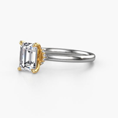 The ring shown above is called the Crystal EME 3, we call this a solitaire ring because it contains a single gemstone. The engagement ring is made in 14 Carat white gold and has a emerald cut diamond of 1.50 crt. This classic white gold solitaire ring with exquisite emerald cut diamond is a beautiful engagement ring. The open prong setting allows light to strike the gemstone from various angles. The ring also stands out because of the high positioning of the gemstone. Because diamonds symbolize true love and purity, they make the perfect gift for the love of your life. The symbol of eternal love is the centerpiece of this solitaire ring. Like a diamond, all other types of precious metal have their own attributed symbolic meaning. You can compile the solitaire engagement ring yourself in various precious metal combinations. This one has the combination of 14 Carat white gold with gold. Each piece of jewelry is made by a team of passionate goldsmiths and jewel designers. This will make your crown jewel truly eye-catching.By using our modern techniques, we can design and customize the finest quality jewels with the utmost care for you. Our engagement rings are always priced 30 percent lower than other jewellers. We make engagement rings to order so we don't have to maintain a large stock. If you have a certain budget, we are more than happy to advice you accordingly.Do you have a specific ring in mind? One you came across somewhere. Please feel free to tell us your wishes and we will turn your design into a unique engagement ring. You can follow the development of your ring design because we use 3D drawings. This gives you a realistic preview of your design. We will gladly send you a non-binding offer, based on a fair price/ quality ratio. It will amaze you.To make it easier for you, we offer a 30 day return policy. Check our terms and conditions.
