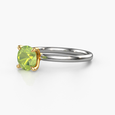The ring shown above is called the Crystal RND 1, we call this a solitaire ring because it contains a single gemstone. The engagement ring is made in 14 Carat white gold and has a round peridot of 6.8 mm. This classic white gold solitaire ring with exquisite round peridot is a beautiful engagement ring. The open prong setting allows light to strike the gemstone from various angles. The ring also stands out because of the high positioning of the gemstone. Because diamonds symbolize true love and purity, they make the perfect gift for the love of your life. The symbol of eternal love is the centerpiece of this solitaire ring. Like a diamond, all other types of precious metal have their own attributed symbolic meaning. You can compile the solitaire engagement ring yourself in various precious metal combinations. This one has the combination of 14 Carat white gold with gold. Each piece of jewelry is made by a team of passionate goldsmiths and jewel designers. This will make your crown jewel truly eye-catching.After receiving your order, our goldsmiths will passionately start the creative process of making your engagement ring in our own studio. Because we don't have a big stockpile, these costs will not be passed on to you. Our pricing is proof of that! We offer top quality jewels at lowest price, guaranteed.Do you have a specific ring in mind? One you came across somewhere. Please feel free to tell us your wishes and we will turn your design into a unique engagement ring. You can follow the development of your ring design because we use 3D drawings. This gives you a realistic preview of your design. We will gladly send you a non-binding offer, based on a fair price/ quality ratio. It will amaze you.To make it easier for you, we offer a 30 day return policy. Check our terms and conditions.