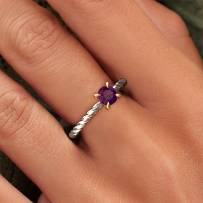 The ring shown above is called the Twanna, we call this a solitaire ring because it contains a single gemstone. The engagement ring is made in 14 Carat white gold and has a round rhodolite of 5 mm. This fantasy white gold solitaire ring with exquisite round rhodolite is a beautiful engagement ring. The open prong setting allows light to strike the gemstone from various angles. The ring also stands out because of the high positioning of the gemstone. Because diamonds symbolize true love and purity, they make the perfect gift for the love of your life. The symbol of eternal love is the centerpiece of this solitaire ring. Like a diamond, all other types of precious metal have their own attributed symbolic meaning. You can compile the solitaire engagement ring yourself in various precious metal combinations. This one has the combination of 14 Carat white gold with gold. Each piece of jewelry is made by a team of passionate goldsmiths and jewel designers. This will make your crown jewel truly eye-catching.After receiving your order, our goldsmiths will passionately start the creative process of making your engagement ring in our own studio. Because we don't have a big stockpile, these costs will not be passed on to you. Our pricing is proof of that! We offer top quality jewels at lowest price, guaranteed.Do you have a specific ring in mind? One you came across somewhere. Please feel free to tell us your wishes and we will turn your design into a unique engagement ring. You can follow the development of your ring design because we use 3D drawings. This gives you a realistic preview of your design. We will gladly send you a non-binding offer, based on a fair price/ quality ratio. It will amaze you.To make it easier for you, we offer a 30 day return policy. Check our terms and conditions.