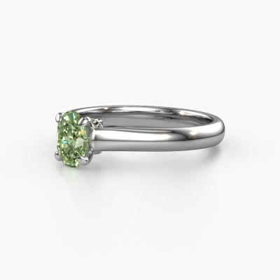The ring shown above is called the Valorie ovl 1, we call this a solitaire ring because it contains a single gemstone. The engagement ring is made in 14 Carat white gold and has a oval green lab grown diamond of 6.5x4.5 mm. This modern white gold solitaire ring with exquisite oval green lab grown diamond is a beautiful engagement ring. The open prong setting allows light to strike the gemstone from various angles. The ring also stands out because of the high positioning of the gemstone. Because diamonds symbolize true love and purity, they make the perfect gift for the love of your life. The symbol of eternal love is the centerpiece of this solitaire ring. Like a diamond, all other types of precious metal have their own attributed symbolic meaning. You can compile the solitaire engagement ring yourself in various precious metal combinations. This one has the combination of 14 Carat white gold with white gold. Each piece of jewelry is made just for you, with attention to detail and design.By using our modern techniques, we can design and customize the finest quality jewels with the utmost care for you. Our engagement rings are always priced 30 percent lower than other jewellers. We make engagement rings to order so we don't have to maintain a large stock. If you have a certain budget, we are more than happy to advice you accordingly.Do you have a specific ring in mind? One you came across somewhere. Please feel free to tell us your wishes and we will turn your design into a unique engagement ring. You can follow the development of your ring design because we use 3D drawings. This gives you a realistic preview of your design. We will gladly send you a non-binding offer, based on a fair price/ quality ratio. It will amaze you.To make it easier for you, we offer a 30 day return policy. Check our terms and conditions.