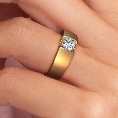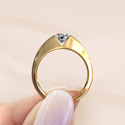 This 14 Carat gold ring is called Theresia and is set with 0.70 crt lab grown diamond. The tension setting is what makes this a special engagement ring because it emphasizes the lab grown diamond. Our expert goldsmith uses special techniques to set the lab grown diamond in this gold ring. By using these techniques, light reflects freely. This gives the ring its maximum shine and a glamorous appearance. A true work of art! The result is a unique ring, with a trendy appearance, passionately handcrafted to perfection by our expert goldsmith. A one-of-a-kind ring, designed for the love of your life. We recommend a solid gemstone, such as a diamond or sapphire, if you select this ring. The ring must be able to endure a lot of pressure during manufacturing. This piece of jewelry is made just for you by our master goldsmiths in our own studio.By using our modern techniques, we can design and customize the finest quality jewels with the utmost care for you. Our engagement rings are always priced 30 percent lower than other jewellers. We make engagement rings to order so we don't have to maintain a large stock. If you have a certain budget, we are more than happy to advice you accordingly.Different styles of new rings are made daily by our team. Perhaps you have found a solitaire engagement ring somewhere. One you would like to give to your loved one. Please feel free to share your thoughts and design with our jewel designers. We would love to turn your design into a modern engagement ring. You can follow the development of your ring design because we use very detailed 3D drawings. On top of that, you can order a dummy of the design. A dummy is a plastic ring, which can be shaped according your ring design. You can try it on and check if the engagement ring is up to standard. We will gladly send you a non-binding offer, based on a fair price/ quality ratio. The offer will baffle you, considering the quality of the ring and gemstones.To make it easier for you, we offer a 30 day return policy. Check our terms and conditions.