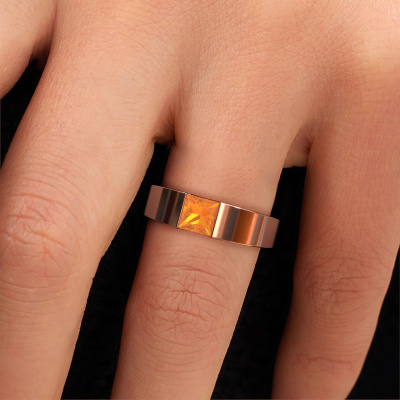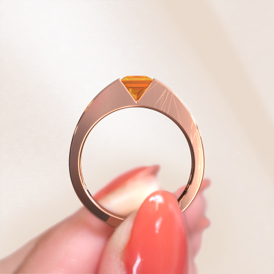 This 14 Carat rose gold ring is called Arlena 1 and is set with 4 mm citrin. The tension setting is what makes this a special engagement ring because it emphasizes the citrin. Our expert goldsmith uses special techniques to set the citrin in this rose gold ring. By using these techniques, light reflects freely. This gives the ring its maximum shine and a glamorous appearance. A true work of art! The result is a unique ring, with a trendy appearance, passionately handcrafted to perfection by our expert goldsmith. A one-of-a-kind ring, designed for the love of your life. We recommend a solid gemstone, such as a diamond or sapphire, if you select this ring. The ring must be able to endure a lot of pressure during manufacturing. This piece of jewelry is made just for you, with attention to detail and design.By using a combination of the latest modern techniques, combined with ancient crafting, we can make all our engagement rings in our own studio. Each jewel is made to order. This is advantageous because we can offer you a price you won't find anywhere else.Do you have a specific ring in mind? One you came across somewhere. Please feel free to tell us your wishes and we will turn your design into a unique engagement ring. You can follow the development of your ring design because we use 3D drawings. This gives you a realistic preview of your design. We will gladly send you a non-binding offer, based on a fair price/ quality ratio. It will amaze you.To make it easier for you, we offer a 30 day return policy. Check our terms and conditions.
