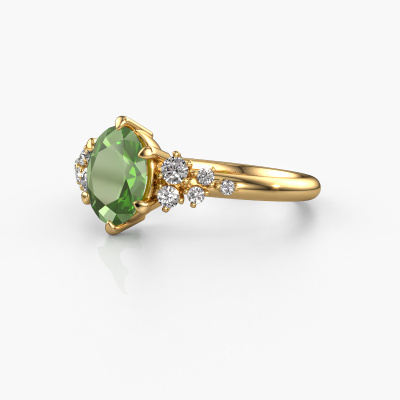 The ring shown above is called the Royce OVL. We call this type of ring a pavé solitaire ring because it has one centre gemstone and a band that is also pave set with gemstones. This engagement ring is made in 14 Carat gold set with a 8x6 mm oval tourmaline green, and pave set lab-grown diamonds at the sides. Each piece of jewellery is made with passion and love by one of our master goldsmiths.This fantasy gold pavé solitaire engagement ring has an exquisite oval tourmaline green centre stone. To further accentuate the centre stone, the band is set full with more lab-grown diamonds. Its open prong setting allows light to strike the tourmaline green from various angles and this adds sparkle to your tourmaline green ring. The photo shown above depicts the goldsmith's carefully handcrafted details of the ring. The high positioning of the centre stone is truly eye-catching. The perfect engagement ring for the crown jewel of your life!After receiving your order, our goldsmiths will passionately start the creative process of making your engagement ring in our own studio. Because we don't have a big stockpile, these costs will not be passed on to you. Our pricing is proof of that! We offer top quality jewels at lowest price, guaranteed.Have you found a specific engagement ring somewhere which you would like to give to your loved one? Please feel free to express your wishes to our jewel designers because we would be honoured to turn your design into a fantasy engagement ring. You can follow the development of your ring design because we use 3D drawings. This gives you a realistic preview of how your design will look. You can also preorder a dummy. A dummy is a plastic ring, which can be shaped according your ring design. You can try it on and check if its width and size are suitable for you. We will gladly send you a non-binding offer, based on a fair price/ quality ratio. It will amaze you, considering the quality of the ring and gemstones.To make it easier for you, we offer a 30 day return policy. Check our terms and conditions.