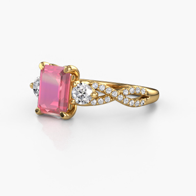 This 14 Carat gold ring is called Marilou EME and is set with tourmaline pink. How would you describe the style of the love of your life? Does she have a unique sense of style? This stunning split band gold engagement ring can be custom-made to your own or her liking. Our tourmaline pink gemstones have been carefully selected because we believe your luxury engagement ring must be adorned with nothing but the most beautiful gemstone. Don't you agree? This jewel is made to shine bright around your finger. Each jewel is hand made with love by our goldsmiths.After receiving your order, our goldsmiths will start the creative process of making your Marilou EME engagement ring. We don't keep stock. This is advantageous because these costs will not be passed on to you. Therefore, we can offer jewellery at exceptionally low prices.Do you have a specific ring in mind? One you came across somewhere. Please feel free to tell us your wishes and we will turn your design into a unique engagement ring. You can follow the development of your ring design because we use 3D drawings. This gives you a realistic preview of your design. We will gladly send you a non-binding offer, based on a fair price/ quality ratio. It will amaze you.To make it easier for you, we offer a 30 day return policy. Check our terms and conditions.