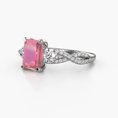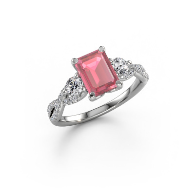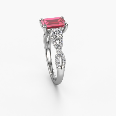 This platinum ring is called Marilou EME and is set with tourmaline pink. How would you describe the style of the love of your life? Does she have a unique sense of style? This stunning split band platinum engagement ring can be custom-made to your own or her liking. Our tourmaline pink gemstones have been carefully selected because we believe your luxury engagement ring must be adorned with nothing but the most beautiful gemstone. Don't you agree? This jewel is made to shine bright around your finger. Each jewel is hand made with love by our goldsmiths.After receiving your order, our goldsmiths will start the creative process of making your Marilou EME engagement ring. We don't keep stock. This is advantageous because these costs will not be passed on to you. Therefore, we can offer jewellery at exceptionally low prices.Do you have a specific ring in mind? One you came across somewhere. Please feel free to tell us your wishes and we will turn your design into a unique engagement ring. You can follow the development of your ring design because we use 3D drawings. This gives you a realistic preview of your design. We will gladly send you a non-binding offer, based on a fair price/ quality ratio. It will amaze you.To make it easier for you, we offer a 30 day return policy. Check our terms and conditions.