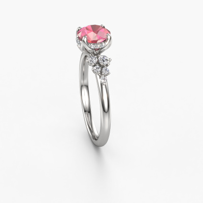 This platinum ring is called Emma RND and is set with tourmaline pink. How would you describe the style of the love of your life? Does she have a unique sense of style? This stunning refined platinum engagement ring can be custom-made to your own or her liking. Our tourmaline pink gemstones have been carefully selected because we believe your fantasy engagement ring must be adorned with nothing but the most beautiful gemstone. Don't you agree? This jewel is made just for you by our master goldsmiths in our own studio.By using our modern techniques, we can design and customize the finest quality jewels with the utmost care for you. Our engagement rings are always priced 30 percent lower than other jewellers. We make engagement rings to order so we don't have to maintain a large stock. If you have a certain budget, we are more than happy to advice you accordingly.Have you found a specific engagement ring somewhere which you would like to give to your loved one? Please feel free to express your wishes to our jewel designers because we would be honoured to turn your design into a fantasy engagement ring. You can follow the development of your ring design because we use 3D drawings. This gives you a realistic preview of how your design will look. You can also preorder a dummy. A dummy is a plastic ring, which can be shaped according your ring design. You can try it on and check if its width and size are suitable for you. We will gladly send you a non-binding offer, based on a fair price/ quality ratio. It will amaze you, considering the quality of the ring and gemstones.To make it easier for you, we offer a 30 day return policy. Check our terms and conditions.