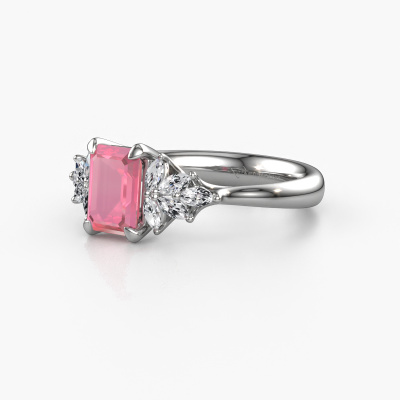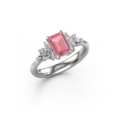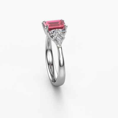 This platinum ring is called Fiona EME and is set with 7x5 mm tourmaline pink. What is it that makes your relationship unique? What is it about her that makes you want to bend down on one knee? The unique bond between the two of you is emphasized by an equally unique ring. A one of a kind special pavé solitaire engagement ring made especially for her. That is why this vintage ring fits her like a glove. Each specific detail of this special platinum tourmaline pink set engagement ring is hand-picked, crafted and polished by our expert goldsmith. The result is an exquisite ring, unique and perfectly crafted to perfection. That is what our expert Goldsmiths strive for. This jewel is created to add sparkle to your finger, each jewel is lovingly made by hand by our goldsmiths.Because we design and deliver our own rings, we can offer you a engagement ring at a price you won't find anywhere else. A ring is made to order, which helps prevent excess supplies, so we can make you a great price offer. We understand it feels risky, buying your engagement ring online, but we will gladly assist in the designing process, taking your budget into consideration.Our team adds new designs to our online collection daily. Our designers and goldsmiths work together in creating the best design. We strive to offer a diverse collection of jewels. Perhaps you have a specific jewel design in mind. One you came across somewhere. Please contact us for a free consultation. We will make you an offer, based on a fair price/ quality ratio, that will baffle you.To make it easier for you, we offer a 30 day return policy. Check our terms and conditions.