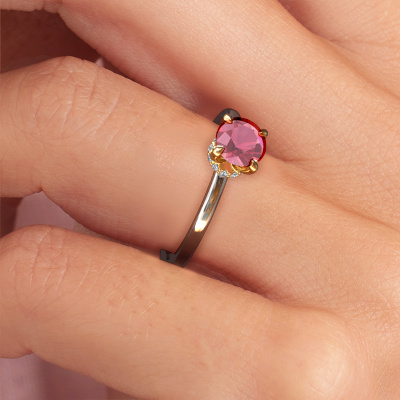 The ring shown above is called the Crystal RND 3, we call this a solitaire ring because it contains a single gemstone. The engagement ring is made in 14 Carat white gold and has a round tourmaline pink of 5.5 mm. The cool thing about our configurator is that you can compile your own piece of jewellery, into a completely personalized one. This solitaire ring is crafted in the precious metals white gold with gold, but of course you are free to pick your own colours. Each piece of jewellery is made with passion and love by one of our master goldsmiths.The solitaire ring is a special type of engagement ring. Its open prong setting allows light to strike the gemstone from various angles. This classic engagement ring is a stunning eye-catcher because of the high positioning of the gemstone. In order for you to commemorate your proposal with a unique ring, we carefully adorn this solitaire ring by hand. The love of your life deserves nothing but the best. By using a combination of the latest modern techniques, combined with ancient crafting, we can make all our engagement rings in our own studio. Each jewel is made to order. This is advantageous because we can offer you a price you won't find anywhere else.Different styles of new rings are made daily by our team. Perhaps you have found a solitaire engagement ring somewhere. One you would like to give to your loved one. Please feel free to share your thoughts and design with our jewel designers. We would love to turn your design into a classic engagement ring. You can follow the development of your ring design because we use very detailed 3D drawings. On top of that, you can order a dummy of the design. A dummy is a plastic ring, which can be shaped according your ring design. You can try it on and check if the engagement ring is up to standard. We will gladly send you a non-binding offer, based on a fair price/ quality ratio. The offer will baffle you, considering the quality of the ring and gemstones.To make it easier for you, we offer a 30 day return policy. Check our terms and conditions.