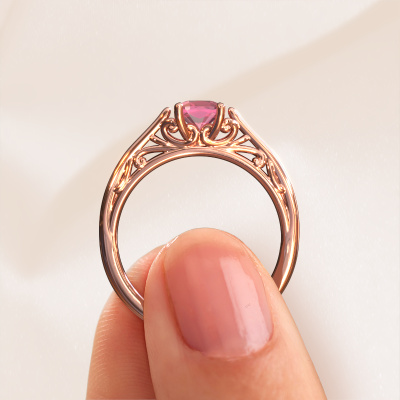 This 14 Carat rose gold ring is called Shannon cus and is set with 5 mm tourmaline pink. What is it that makes your relationship unique? What is it about her that makes you want to bend down on one knee? The unique bond between the two of you is emphasized by an equally unique ring. A one of a kind ajour solitaire engagement ring made especially for her. That is why this Celtic ring fits her like a glove. Each specific detail of this ajour rose gold tourmaline pink set engagement ring is hand-picked, crafted and polished by our expert goldsmith. The result is an exquisite ring, unique and perfectly crafted to perfection. That is what our expert Goldsmiths strive for. This jewel is made just for you, with attention to detail and design.By using our modern techniques, we can design and customize the finest quality jewels with the utmost care for you. Our engagement rings are always priced 30 percent lower than other jewellers. We make engagement rings to order so we don't have to maintain a large stock. If you have a certain budget, we are more than happy to advice you accordingly.Our team adds new designs to our online collection daily. Our designers and goldsmiths work together in creating the best design. We strive to offer a diverse collection of jewels. Perhaps you have a specific jewel design in mind. One you came across somewhere. Please contact us for a free consultation. We will make you an offer, based on a fair price/ quality ratio, that will baffle you.To make it easier for you, we offer a 30 day return policy. Check our terms and conditions.