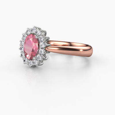 The ring shown above is called the Margien 1. We call this a Lady Diana ring. With an Lady Diana engagement ring, the larger centre gem is encircled by smaller side stones. This 14 Carat rose gold ring is set with a 7x5 mm oval tourmaline pink gemstone, surrounded by smaller diamonds side stones. It's the most famous and celebrated engagement ring in the world; The Lady Diana ring. Exclusively meant for the most remarkable person in your life! A truly stunning aspect of this Lady Diana ring is its centre tourmaline pink. The smaller side stones embracing the tourmaline pink emphasize the sparkle of the centre gemstone, this makes it look as though they merge into one big gemstone. Due to its design, this is even more apparent in the Lady Di ring. Our expert Goldsmiths are keen to create a unique ring just for you. We can even customize the ring to your liking in our own crafting studio. This piece of jewellery is made just for you by our master goldsmiths in our own studio.After receiving your order, our goldsmiths will start the creative process of making your Margien 1 engagement ring. We don't keep stock. This is advantageous because these costs will not be passed on to you. Therefore, we can offer jewellery at exceptionally low prices.Our designers and goldsmiths work together each day, creating new jewels. Perhaps you have found a nice traditional engagement ring somewhere, which can be used to customize your unique ring. Please feel free to contact us. We will make you an offer, based on a fair price/ quality ratio, which will amaze you.To make it easier for you, we offer a 30 day return policy. Check our terms and conditions.