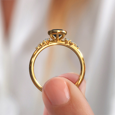 This 14 Carat gold ring is called Aliyah MRQ and is set with 1.633 crt black diamond. Are you looking for a trendy gold engagement ring which you can customize to your own liking? This trendy engagement ring is set with black diamond which is carefully selected for this specific ring in order to create the best effect. Our expert goldsmith will create your ring in our own crafting studio, where the black diamond will be set with great care. The ring will then be polished till it shines perfectly. Nothing but the best for the love of your life! The great thing about our online tool is, that you can compile your own jewellery into a unique, personalized piece. Each piece of jewellery is made by a team of passionate goldsmiths and jewel designers. This will make your crown jewel truly eye-catching.By using our modern techniques, we can design and customize the finest quality jewels with the utmost care for you. Our engagement rings are always priced 30 percent lower than other jewellers. We make engagement rings to order so we don't have to maintain a large stock. If you have a certain budget, we are more than happy to advice you accordingly.Our designers and goldsmiths work together each day, creating new jewels. Perhaps you have found a nice trendy engagement ring somewhere, which can be used to customize your unique ring. Please feel free to contact us. We will make you an offer, based on a fair price/ quality ratio, which will amaze you.To make it easier for you, we offer a 30 day return policy. Check our terms and conditions.