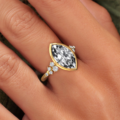 This 14 Carat gold ring is called Aliyah MRQ and is set with 3.266 crt lab grown diamond. Are you looking for a trendy gold engagement ring which you can customize to your own liking? This trendy engagement ring is set with lab grown diamond which is carefully selected for this specific ring in order to create the best effect. Our expert goldsmith will create your ring in our own crafting studio, where the lab grown diamond will be set with great care. The ring will then be polished till it shines perfectly. Nothing but the best for the love of your life! The great thing about our online tool is, that you can compile your own jewellery into a unique, personalized piece. Each piece of jewellery is made by a team of passionate goldsmiths and jewel designers. This will make your crown jewel truly eye-catching.By using our modern techniques, we can design and customize the finest quality jewels with the utmost care for you. Our engagement rings are always priced 30 percent lower than other jewellers. We make engagement rings to order so we don't have to maintain a large stock. If you have a certain budget, we are more than happy to advice you accordingly.Our designers and goldsmiths work together each day, creating new jewels. Perhaps you have found a nice trendy engagement ring somewhere, which can be used to customize your unique ring. Please feel free to contact us. We will make you an offer, based on a fair price/ quality ratio, which will amaze you.To make it easier for you, we offer a 30 day return policy. Check our terms and conditions.