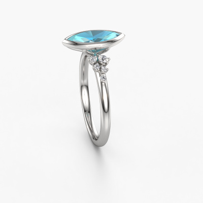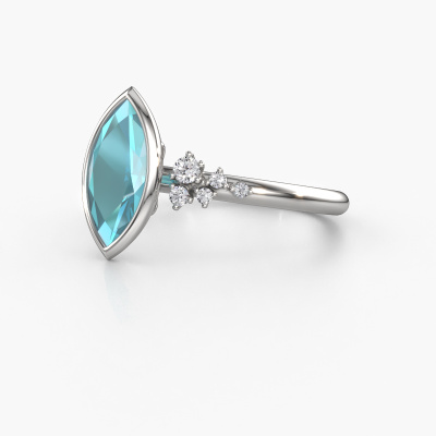 This platinum ring is called Aliyah MRQ and is set with 11x5.5 mm blue topaz. Are you looking for a trendy platinum engagement ring which you can customize to your own liking? This trendy engagement ring is set with blue topaz which is carefully selected for this specific ring in order to create the best effect. Our expert goldsmith will create your ring in our own crafting studio, where the blue topaz will be set with great care. The ring will then be polished till it shines perfectly. Nothing but the best for the love of your life! The great thing about our online tool is, that you can compile your own jewellery into a unique, personalized piece. Each piece of jewellery is made by a team of passionate goldsmiths and jewel designers. This will make your crown jewel truly eye-catching.By using our modern techniques, we can design and customize the finest quality jewels with the utmost care for you. Our engagement rings are always priced 30 percent lower than other jewellers. We make engagement rings to order so we don't have to maintain a large stock. If you have a certain budget, we are more than happy to advice you accordingly.Our designers and goldsmiths work together each day, creating new jewels. Perhaps you have found a nice trendy engagement ring somewhere, which can be used to customize your unique ring. Please feel free to contact us. We will make you an offer, based on a fair price/ quality ratio, which will amaze you.To make it easier for you, we offer a 30 day return policy. Check our terms and conditions.