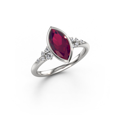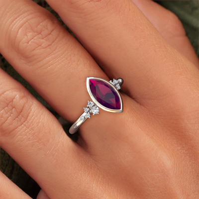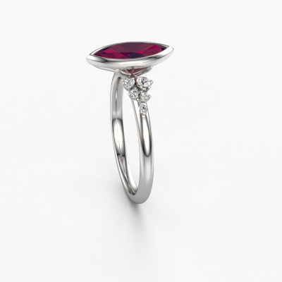 This platinum ring is called Aliyah MRQ and is set with 11x5.5 mm rhodolite. Are you looking for a trendy platinum engagement ring which you can customize to your own liking? This trendy engagement ring is set with rhodolite which is carefully selected for this specific ring in order to create the best effect. Our expert goldsmith will create your ring in our own crafting studio, where the rhodolite will be set with great care. The ring will then be polished till it shines perfectly. Nothing but the best for the love of your life! The great thing about our online tool is, that you can compile your own jewellery into a unique, personalized piece. Each piece of jewellery is made by a team of passionate goldsmiths and jewel designers. This will make your crown jewel truly eye-catching.By using our modern techniques, we can design and customize the finest quality jewels with the utmost care for you. Our engagement rings are always priced 30 percent lower than other jewellers. We make engagement rings to order so we don't have to maintain a large stock. If you have a certain budget, we are more than happy to advice you accordingly.Our designers and goldsmiths work together each day, creating new jewels. Perhaps you have found a nice trendy engagement ring somewhere, which can be used to customize your unique ring. Please feel free to contact us. We will make you an offer, based on a fair price/ quality ratio, which will amaze you.To make it easier for you, we offer a 30 day return policy. Check our terms and conditions.
