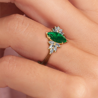 This 14 Carat gold ring is called Fiona MRQ and is set with 10x5 mm emerald. Are you looking for a unique gold engagement ring which you can customize to your own liking? This unique engagement ring is set with emerald which is carefully selected for this specific ring in order to create the best effect. Our expert goldsmith will create your ring in our own crafting studio, where the emerald will be set with great care. The ring will then be polished till it shines perfectly. Nothing but the best for the love of your life! The great thing about our online tool is, that you can compile your own jewellery into a unique, personalized piece. Each piece of jewellery is made just for you by our master goldsmiths in our own studio.By using a combination of the latest modern techniques, combined with ancient crafting, we can make all our engagement rings in our own studio. Each jewel is made to order. This is advantageous because we can offer you a price you won't find anywhere else.Our designers and goldsmiths work together each day, creating new jewels. Perhaps you have found a nice unique engagement ring somewhere, which can be used to customize your unique ring. Please feel free to contact us. We will make you an offer, based on a fair price/ quality ratio, which will amaze you.To make it easier for you, we offer a 30 day return policy. Check our terms and conditions.