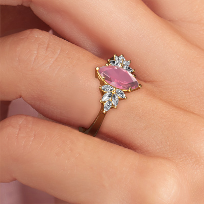 This 14 Carat gold ring is called Fiona MRQ and is set with 10x5 mm tourmaline pink. Are you looking for a unique gold engagement ring which you can customize to your own liking? This unique engagement ring is set with tourmaline pink which is carefully selected for this specific ring in order to create the best effect. Our expert goldsmith will create your ring in our own crafting studio, where the tourmaline pink will be set with great care. The ring will then be polished till it shines perfectly. Nothing but the best for the love of your life! The great thing about our online tool is, that you can compile your own jewellery into a unique, personalized piece. Each piece of jewellery is made just for you by our master goldsmiths in our own studio.By using a combination of the latest modern techniques, combined with ancient crafting, we can make all our engagement rings in our own studio. Each jewel is made to order. This is advantageous because we can offer you a price you won't find anywhere else.Our designers and goldsmiths work together each day, creating new jewels. Perhaps you have found a nice unique engagement ring somewhere, which can be used to customize your unique ring. Please feel free to contact us. We will make you an offer, based on a fair price/ quality ratio, which will amaze you.To make it easier for you, we offer a 30 day return policy. Check our terms and conditions.
