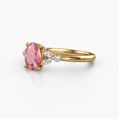This 14 Carat gold ring is called Megan OVL and is set with 7,5x5,5 mm tourmaline pink. Are you looking for a unique gold engagement ring which you can customize to your own liking? This unique engagement ring is set with tourmaline pink which is carefully selected for this specific ring in order to create the best effect. Our expert goldsmith will create your ring in our own crafting studio, where the tourmaline pink will be set with great care. The ring will then be polished till it shines perfectly. Nothing but the best for the love of your life! The great thing about our online tool is, that you can compile your own jewellery into a unique, personalized piece. Each piece of jewellery is made by a team of passionate goldsmiths and jewel designers. This will make your crown jewel truly eye-catching.By using a combination of the latest modern techniques, combined with ancient crafting, we can make all our engagement rings in our own studio. Each jewel is made to order. This is advantageous because we can offer you a price you won't find anywhere else.Different styles of new rings are made daily by our team. Perhaps you have found a pavé solitaire engagement ring somewhere. One you would like to give to your loved one. Please feel free to share your thoughts and design with our jewel designers. We would love to turn your design into a unique engagement ring. You can follow the development of your ring design because we use very detailed 3D drawings. On top of that, you can order a dummy of the design. A dummy is a plastic ring, which can be shaped according your ring design. You can try it on and check if the engagement ring is up to standard. We will gladly send you a non-binding offer, based on a fair price/ quality ratio. The offer will baffle you, considering the quality of the ring and gemstones.To make it easier for you, we offer a 30 day return policy. Check our terms and conditions.